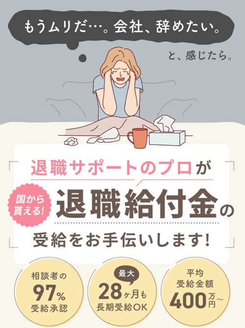 「退職サポーターズ」は、専門性の高いバックアップ体制とスピード感のある受給設計が大きな魅力です。