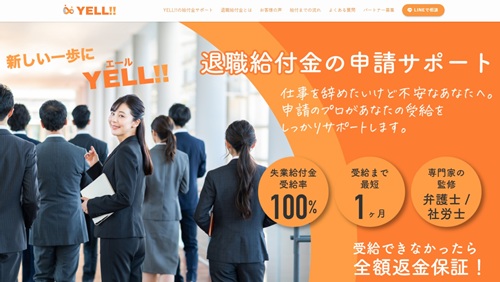 「YELL!!」は、給付金受給率100%を誇る退職給付金サポート会社です。専門知識を持つスタッフが申請から受給完了までを徹底的にバックアップするため、初めての方でも安心して任せることができますね。